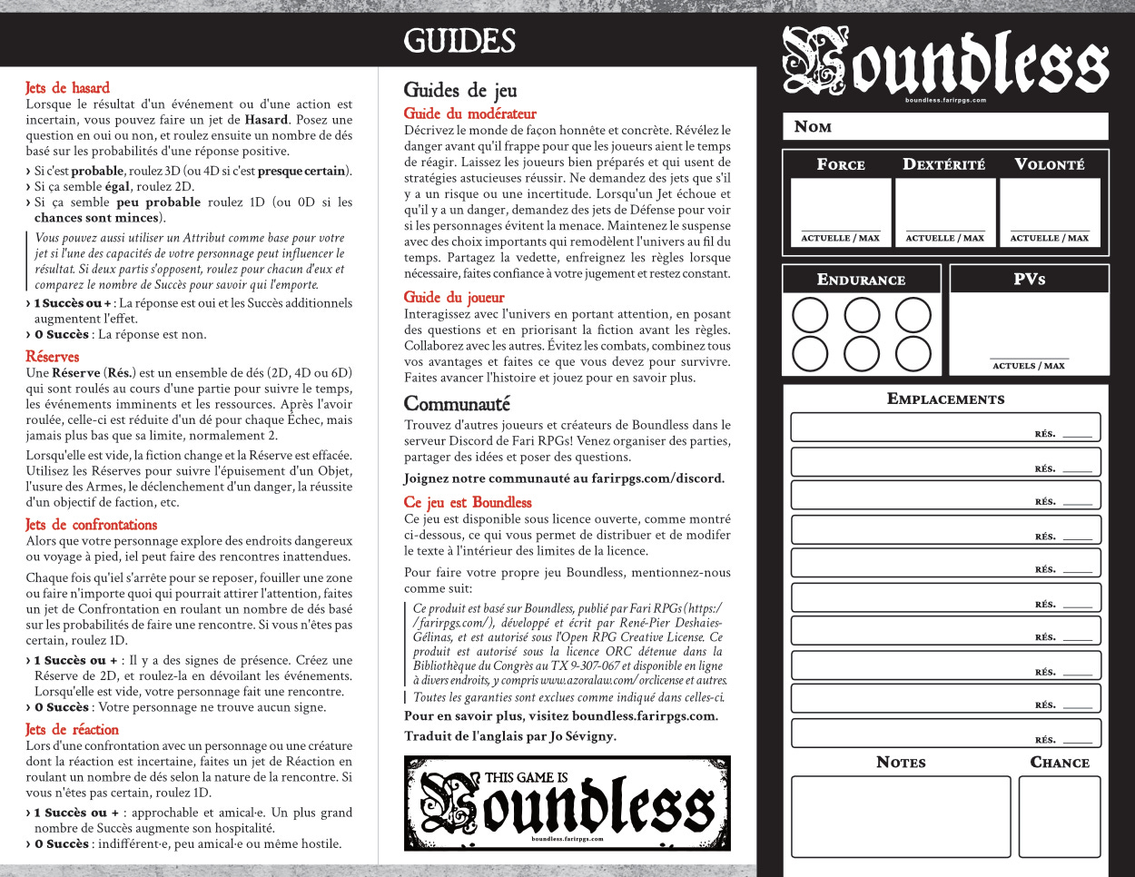 Hey everyone, very excited to share that Boundless, my free and open licensed soulslike OSR adventure game has been translated in French thanks to the incredible work of Jo Sévigny (Wendigo Workshop)