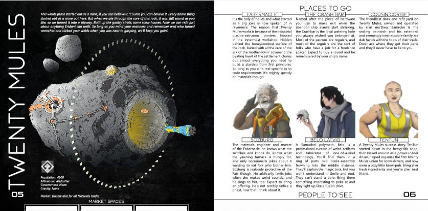 If you haven’t heard, this game is a scifi TTRPG written by Galen Pejeau and Shawn Drake with a core system designed in close collaboration with yours truly where players will take on the roles of a spaceship crew, trading necessities between the scattered settlements of the Eridani Belt, avoiding the remnant forces from the devastating Shell incursion, and hopefully making a better world.