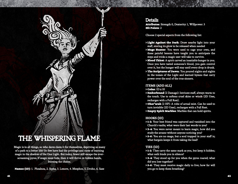 My latest post was about the Unsung Blade, one of the backgrounds available for Chronicles of the Boundless. Today, I want to talk about the Whispering Flame.