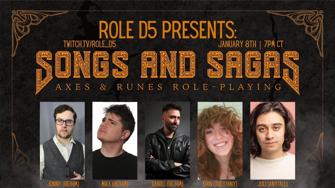 Hey everyone, I'm thrilled to announce that later today, the amazing folks at Role D5 will be playing a one-shot adventure of our upcoming game, Songs and Sagas.